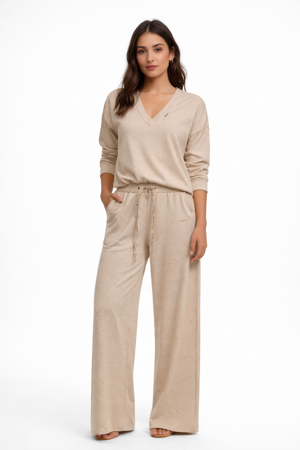 Set Lounge Bej cu Imprimeu Delicat Soft Aura