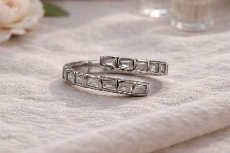 Inel din Argint 925 cu Design Deschis și Pietre Baguette – Eleganță Modernă