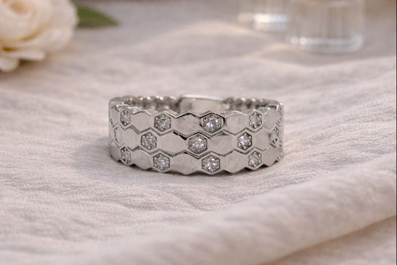 Inel din argint 925 cu model fagure și cristale – eleganță inspirată din natură